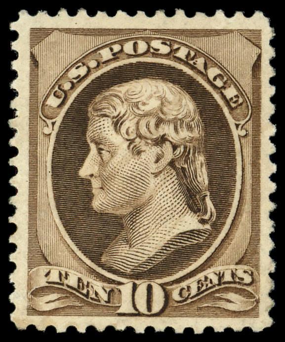 1882, 10¢ brown, re-engraved (Scott 209), regummed, Very Fine to Extremely Fine. Scott $65. (Image)