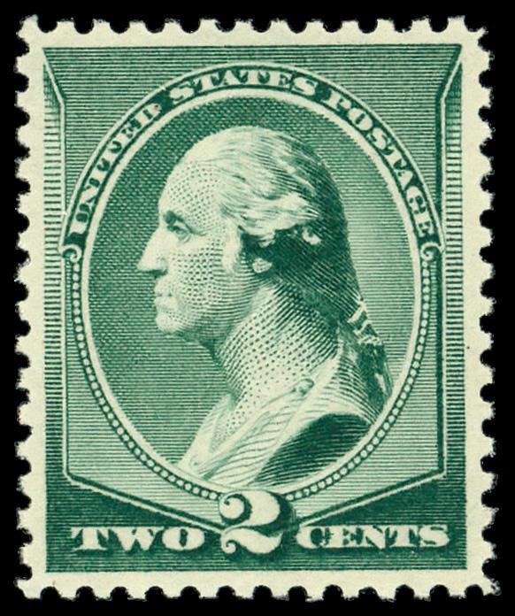 1887, 2¢ green (Scott 213), o.g., never hinged, Very Fine to Extremely Fine. Scott $120. (Image)