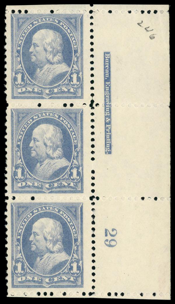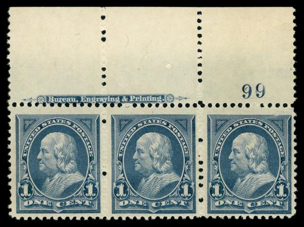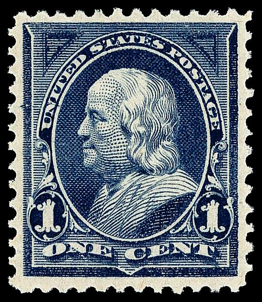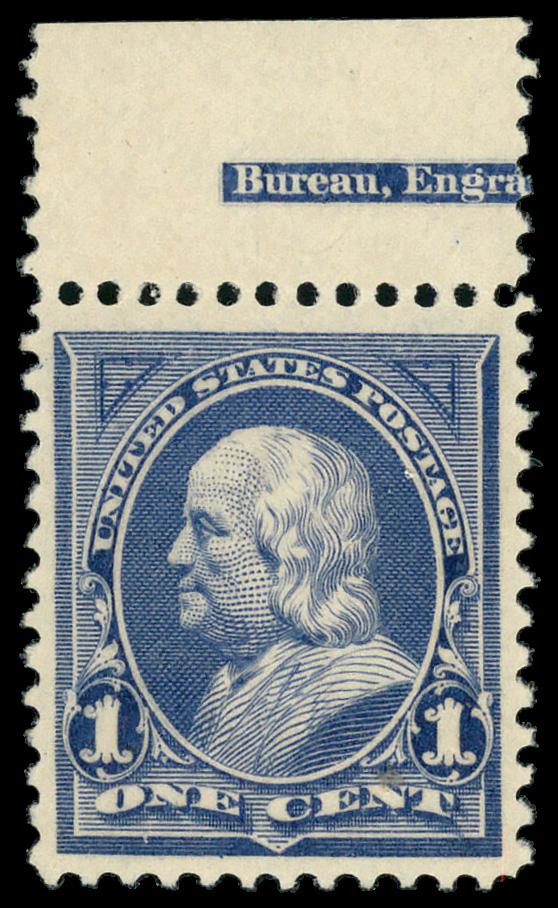 1895, 1¢ blue, D.L. watermark (Scott 264), o.g., never hinged, Very Fine to Extremely Fine. Scott $18. (Image)