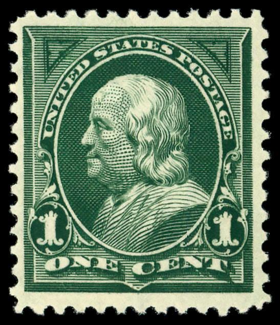 1898, 1¢ deep green (Scott 279), o.g., never hinged, Fine to Very Fine. Scott $25. (Image)