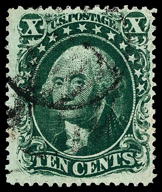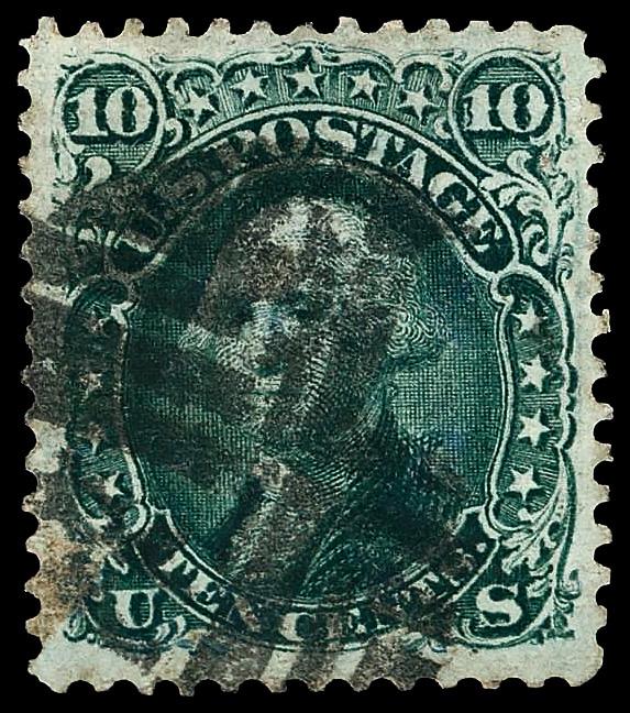 1867, 10¢ green, E. grill (Scott 89); small repaired fault at left, Very Fine. Scott $350. (Image)