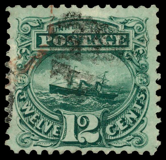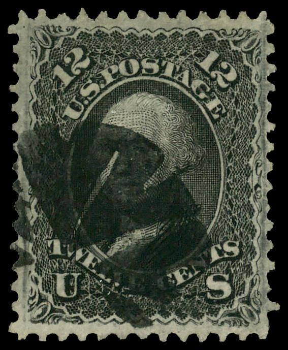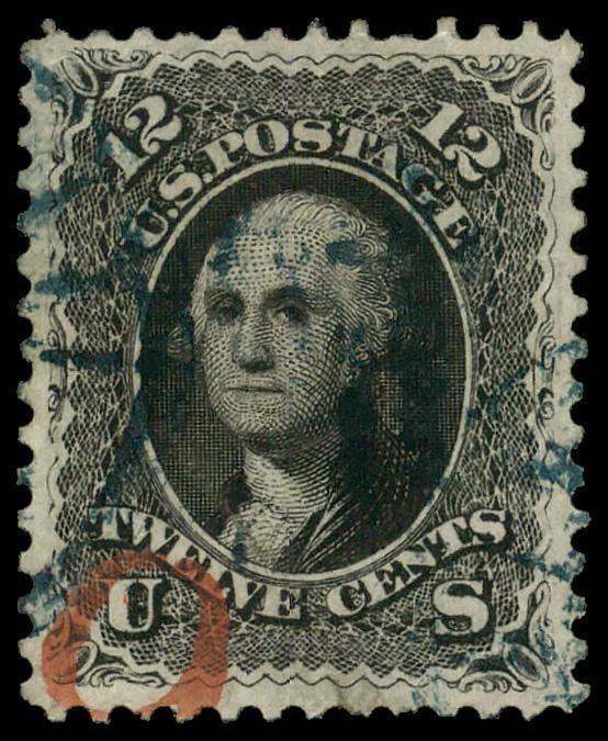 1861, 12¢ black (Scott 69), red and blue cancels; creases, Very Fine. Scott $155. (Image)