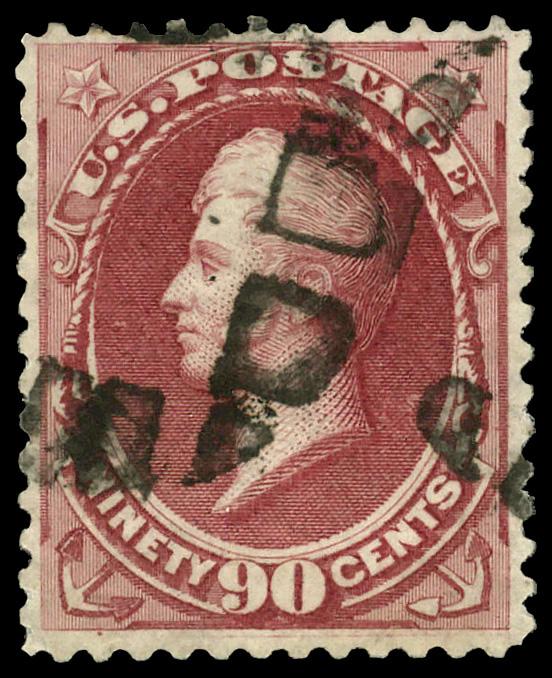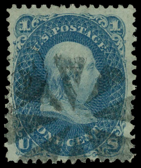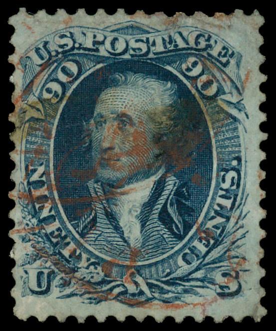 1861, 90¢ blue (Scott 72), red postmark; small faults, Fine to Very Fine. Scott $750. (Image)