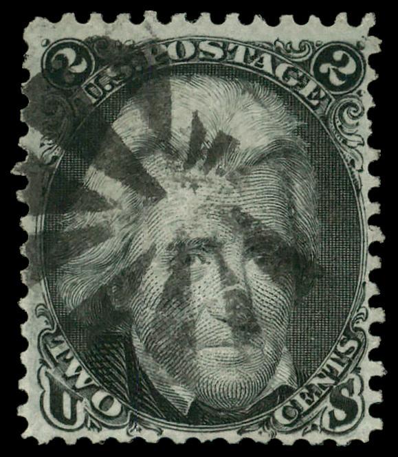 1867, 2¢ black, E. grill (Scott 87), circle of wedges cancel, Fine. Scott $200. (Image)