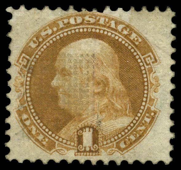 1869, 1¢ buff (Scott 112), very light cancel, lovely bold color; small repaired fault at top, Fine to Very Fine. Scott $160. (Image)