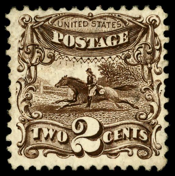 1869 (1875 Re-issue), 2¢ brown (Scott 124), regummed; shorter perf at right, Fine to Very Fine, only 4755 sold, with 1980 P.F. certificate. Scott $250. (Image)