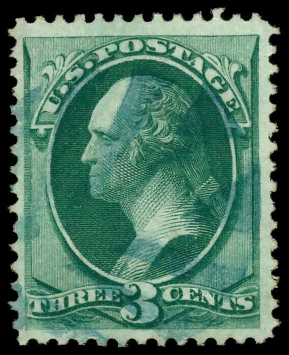 1857, 10¢ green, type III (Scott 33), black circular grid cancel, great example of this type; small corner crease at top right, Fine to Very Fine. Scott $190. (Image)