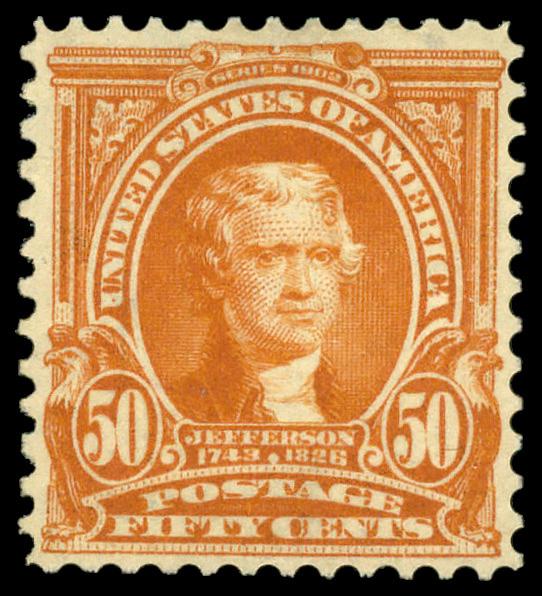 1903, 50¢ orange (Scott 310), o.g., hinged; reperforated at top, right and bottom, Fine. Scott $425. (Image)