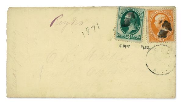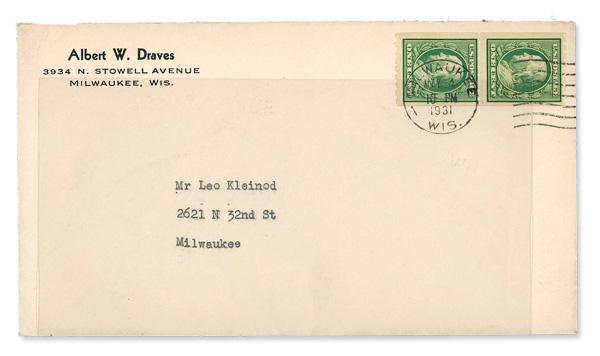 1910, 1¢ green, S.L. watermark, vertical coil (Scott 390), pair on cover, late usage., Fine to Very Fine. Scott $45. (Image)