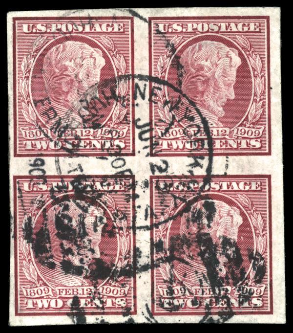 1909, 2¢ Lincoln Centenary, imperf. (Scott 368), block of 4 (2mm spacing), Fine to Very Fine. Scott $90. (Image)