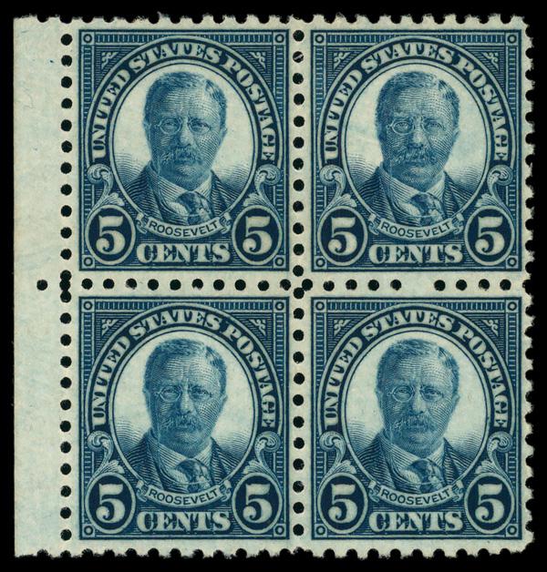 1924, 5¢ Roosevelt, rotary press printing, perf. 10 (Scott 586), block of 4, o.g., never hinged, Fine to Very Fine. Scott $150. (Image)