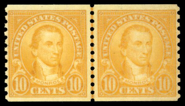 1919, 1¢ green, rotary press coil waste, vertical pair, imperf. horizontally (Scott 538a), o.g., hinged, Very Fine to Extremely Fine. Scott $60. (Image)