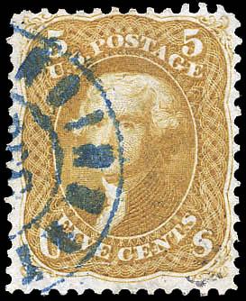 1861, 5¢ buff (Scott 67), neat town cancel in blue, bright fresh color, Fine. Scott $780. (Image)
