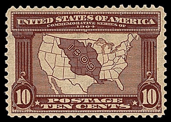 1904, 10¢ Louisiana Purchase (Scott 327), o.g., hinged, Extremely Fine, with 2023 P.F. certificate graded XF 90. SMQ XF 90; $225. Scott $125. (Image)