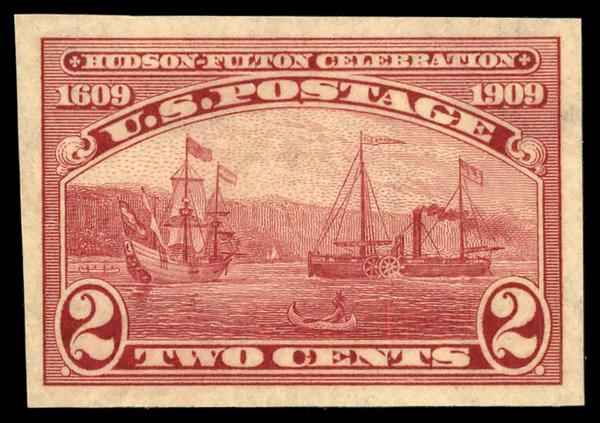 1909, 2¢ Hudson-Fulton, imperf. (Scott 373), o.g., never hinged, Extremely Fine. Scott $38. (Image)