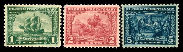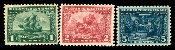 1920, Pilgrim issue complete (Scott 548-550), set of 3, o.g., never hinged; light gum crease on 5¢, Fine to Very Fine. Scott $94. (Image)