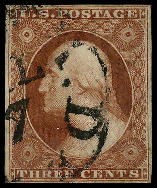 1851, 3¢ orange brown, type I (Scott 10), Fine to Very Fine. Scott $200. (Image)