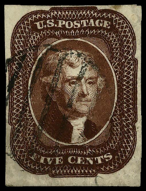 1856, 5¢ red brown (Scott 12), Fine to Very Fine. Scott $750. (Image)