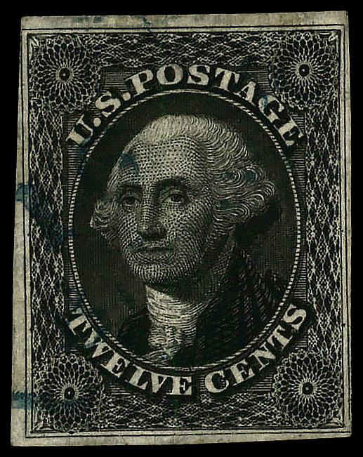 1851, 12¢ gray black (Scott 17), blue cancel, Fine to Very Fine. Scott $275. (Image)