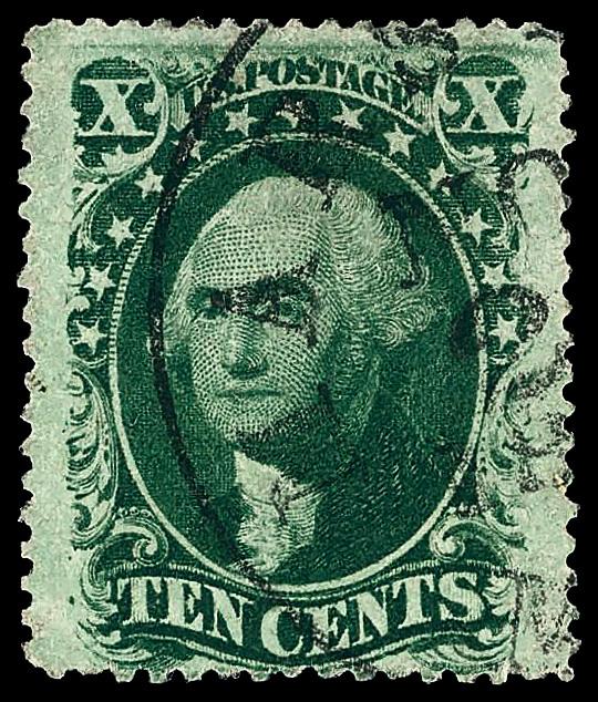 1859, 10¢ green, type V (Scott 35), Very Fine, with 2024 P.F. certificate graded VF 80. SMQ VF 80; $65. Scott $55. (Image)