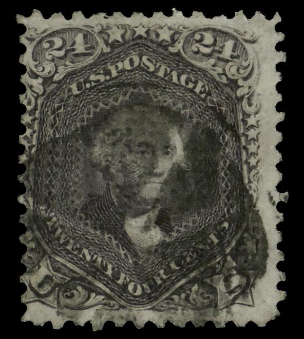 1870, 24¢ purple, without grill, N.B.N.C. printing (Scott 153), face-fresh with solid color and face-free cancel; faint diagonal crease, Fine to Very Fine, with 2018 P.S.E. certificate. Scott $225. (Image)