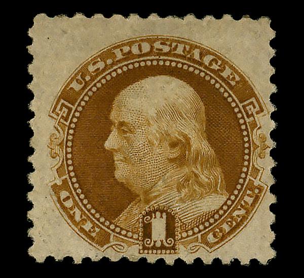 1869 (1880 Re-issue), 1¢ buff (Scott 133), o.g., heavy hinge remnants, Fine, only 5000 sold. Scott $375. (Image)