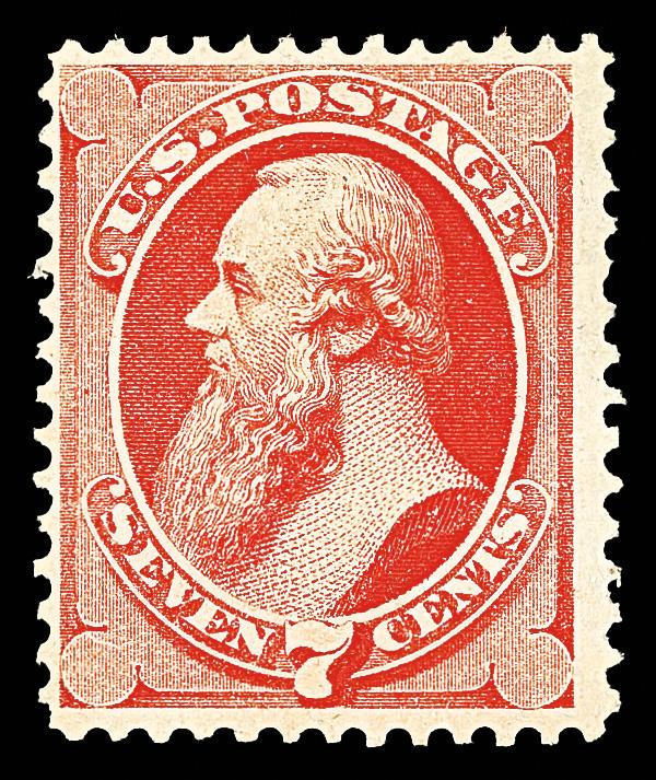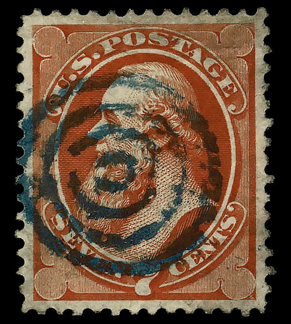 1873, 7¢ orange vermilion, C.B.N.C. printing (Scott 160), blue target cancel; minor perf faults, Extremely Fine. Scott $94. (Image)