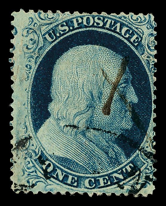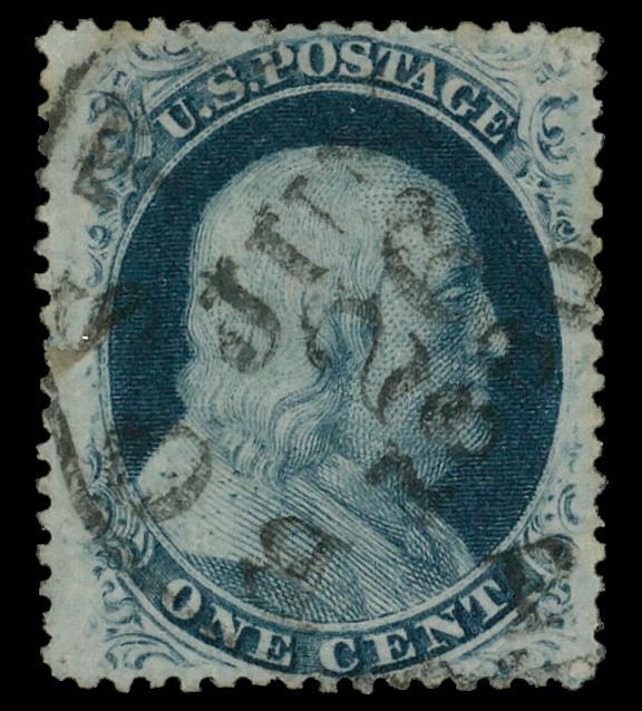 1857, 1¢ blue, type V (Scott 24), '1860' dated cds, Very Fine. Scott $43. (Image)