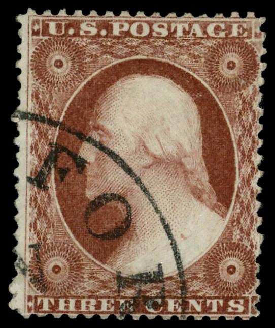 1857, 3¢ rose, type I (Scott 25), Fine. Scott $190. (Image)