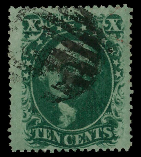 1859, 10¢ green, type V (Scott 35), Very Fine. Scott $55. (Image)