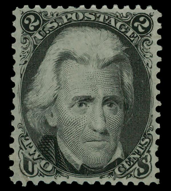 1863, 2¢ black (Scott 73), regummed; corner crease, Very Fine to Extremely Fine. Scott $150. (Image)