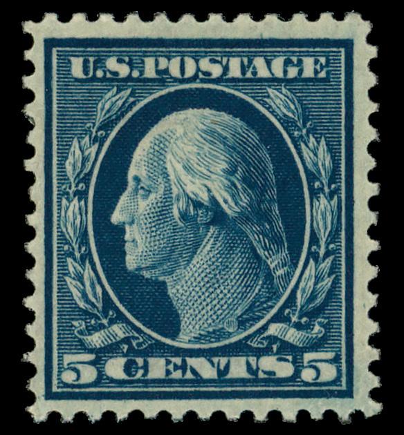 1908, 5¢ blue, D.L. watermark (Scott 335), part o.g., Fine to Very Fine. Scott $45. (Image)