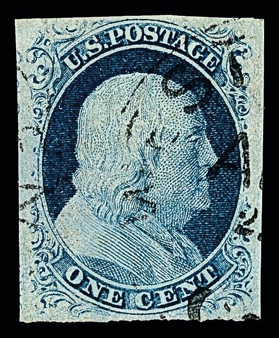1851, 1¢ blue, type II (Scott 7), single, Nice 4 margin copy with a red town and manuscript cancellation., Very Fine, with 2002 P.F. certificate. Scott $160. (Image)
