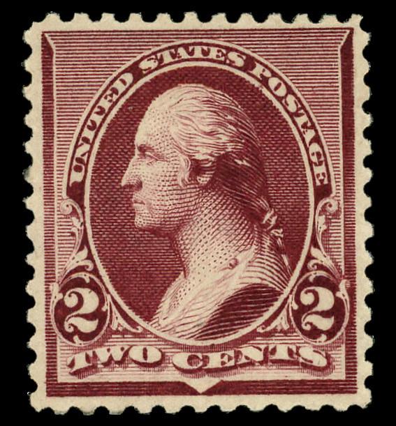 1890, 2¢ lake (Scott 219D), o.g., small hinge remnant; reperfed, Very Fine. Scott $160. (Image)
