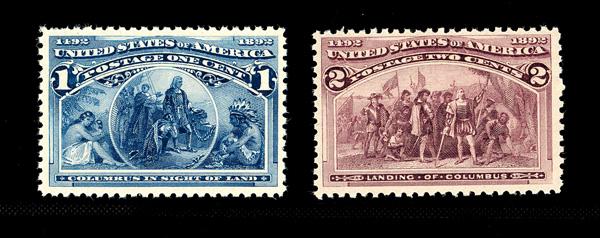 1893, 1¢ & 2¢ Columbians (Scott 230 & 231), o.g., never hinged, Fine to Very Fine, with 2001 P.S.E. certificate for each. Scott $64. (Image)