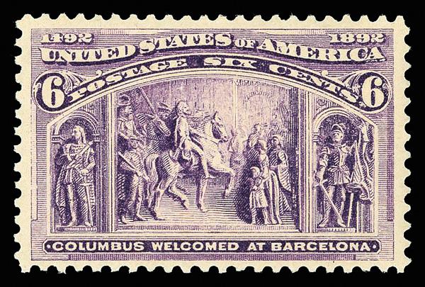 1893, 6¢ Columbian (Scott 235), o.g., never hinged, Very Fine, with 2005 P.F. certificate. Scott $150. (Image)