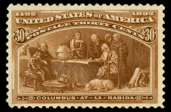 1893, 30¢ Columbian (Scott 239), o.g., small hinge remnant, Very Fine. Scott $225. (Image)
