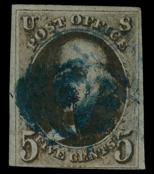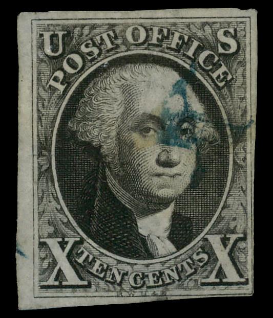 1847, 10¢ black (Scott 2), blue cancel, Fine. Scott $900. (Image)