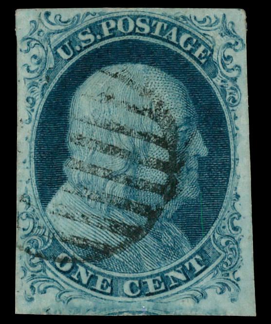 1851, 1¢ blue, type II (Scott 7), Extremely Fine. Scott $140. (Image)