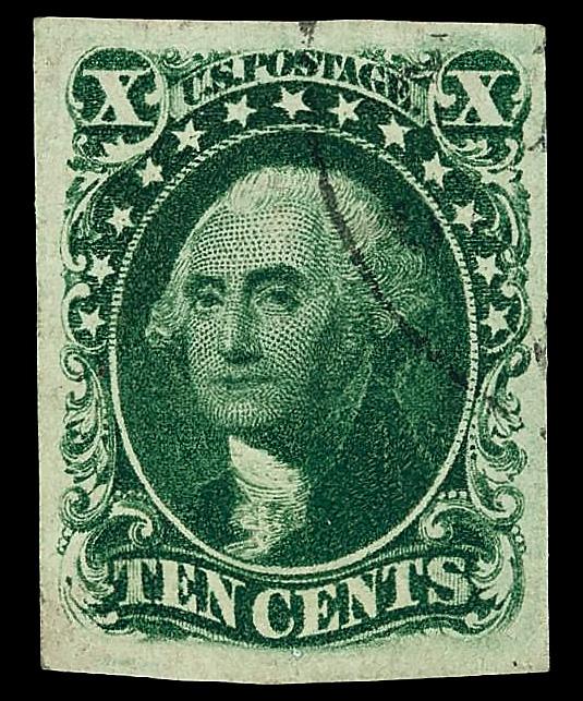 1855, 10¢ green, type III (Scott 15), Very Fine to Extremely Fine, with 1995 P.F. certificate & 1980 P.F. certificate. Scott $145. (Image)