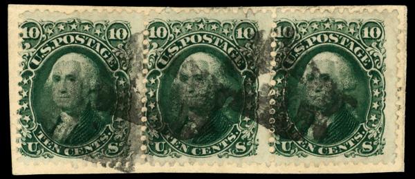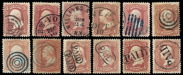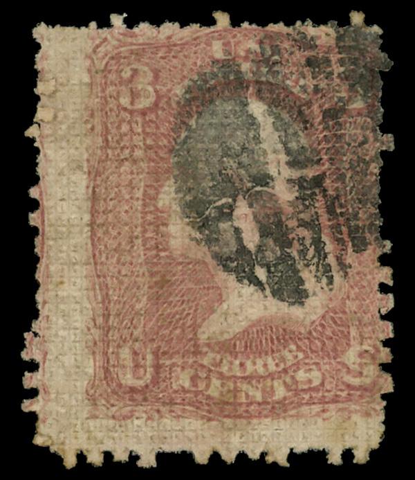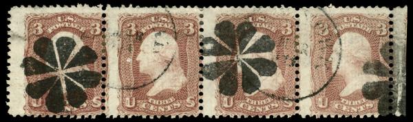 1867, 3¢ rose, E. grill (Scott 88), segmented fancy cancels, Very Good to Fine. Scott $130. (Image)