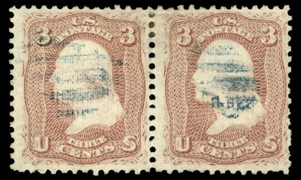 1852, 3¢ dull red, type I (Scott 11), vertical pair, Very Fine. Scott $63. (Image)