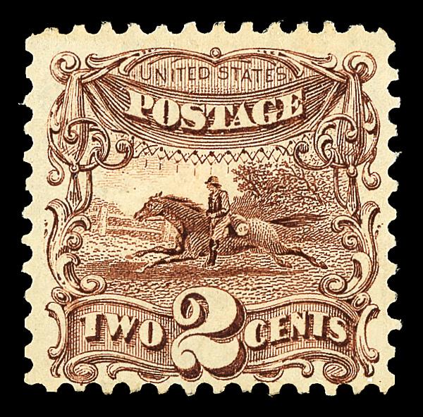 1869 (1875 Re-issue), 2¢ brown (Scott 124), o.g., hinged, fresh with crisp detail and robust color; small spot of gum loss noted for accuracy, Fine to Very Fine, only 4755 sold. Scott $600. (Image)