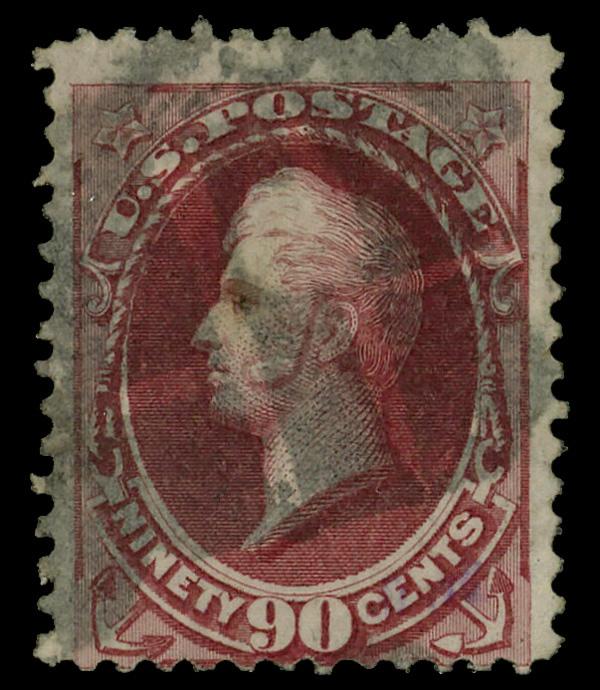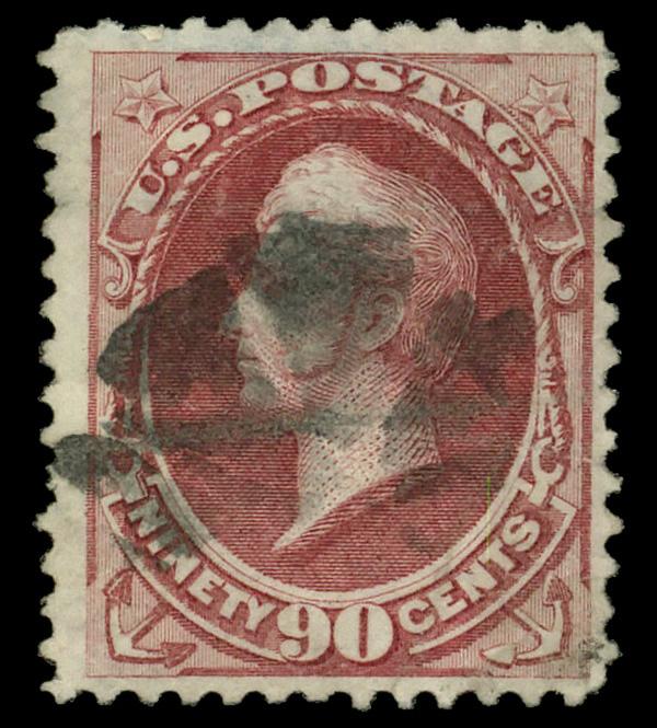 1870, 90¢ carmine, H. grill, N.B.N.C. printing (Scott 144), Very Good. Scott $2,350. (Image)