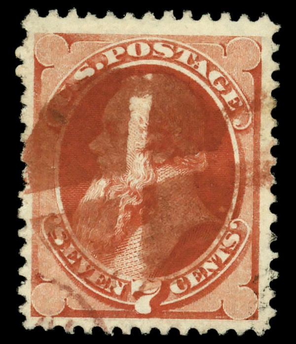 1871, 7¢ vermilion, without grill, N.B.N.C. printing (Scott 149), red cancel, Fine to Very Fine. Scott $110. (Image)