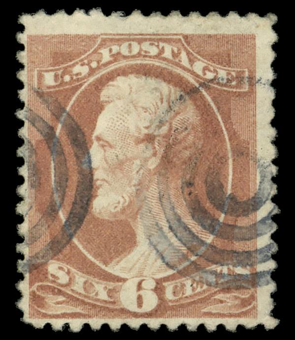1879, 5¢ blue, A.B.N.C. printing (Scott 185), jumbo margins all around, Very Fine to Extremely Fine. Scott $16. (Image)