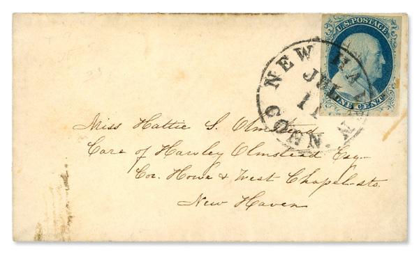 1852, 1¢ blue, type IV (Scott 9), Refief A tied by 'New Haven, Conn, JUL 11' on locally sent Ladies Cover., Very Fine, with 2025 P.F. certificate. Scott $120. (Image)