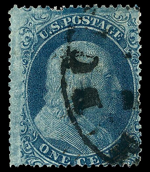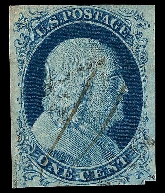 1852, 1¢ blue, type IV (Scott 9), pen cancel; light toning at left, Extremely Fine, with 2025 P.F. certificate graded F 70. SMQ F 70; $40. (Image)