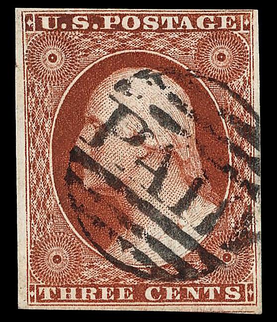 1852, 3¢ dull red, type I (Scott 11), Extremely Fine, with 2024 P.S.E. certificate graded XF 90. SMQ XF 90; $85. (Image)
