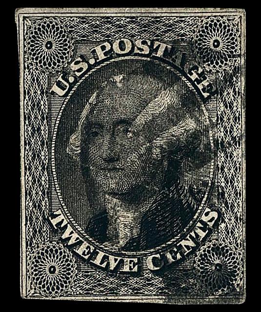 1851, 12¢ gray black (Scott 17); diagonal crease & small thin at top, Very Good to Fine, with 2025 P.F. certificate. Scott $260. (Image)